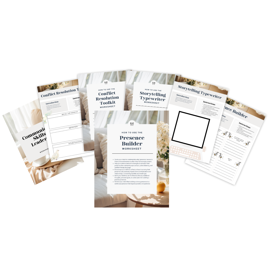 • Communication Skills Worksheet: Develop your clients’ communication abilities to enhance relationships, leadership, and conflict resolution.