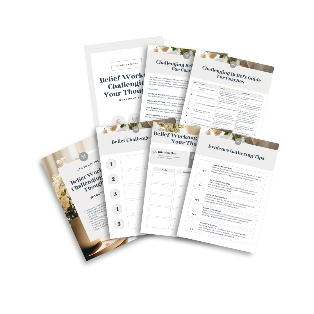 • Challenging Your Thoughts Worksheet: Help clients identify limiting beliefs and replace them with empowering, growth-oriented thoughts.