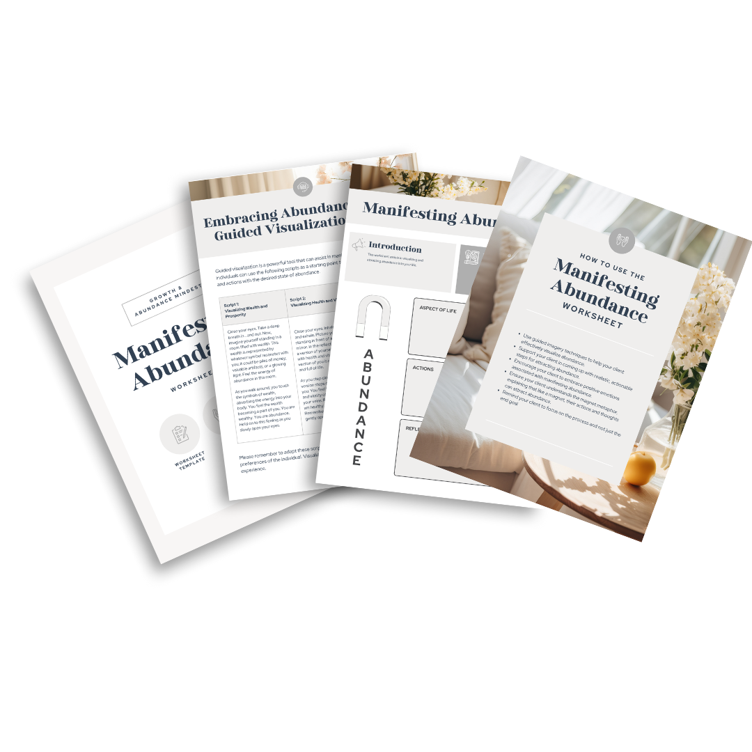 • Manifestation Worksheet: Assist clients in visualizing and manifesting their dreams through focused intention and mindset exercises.