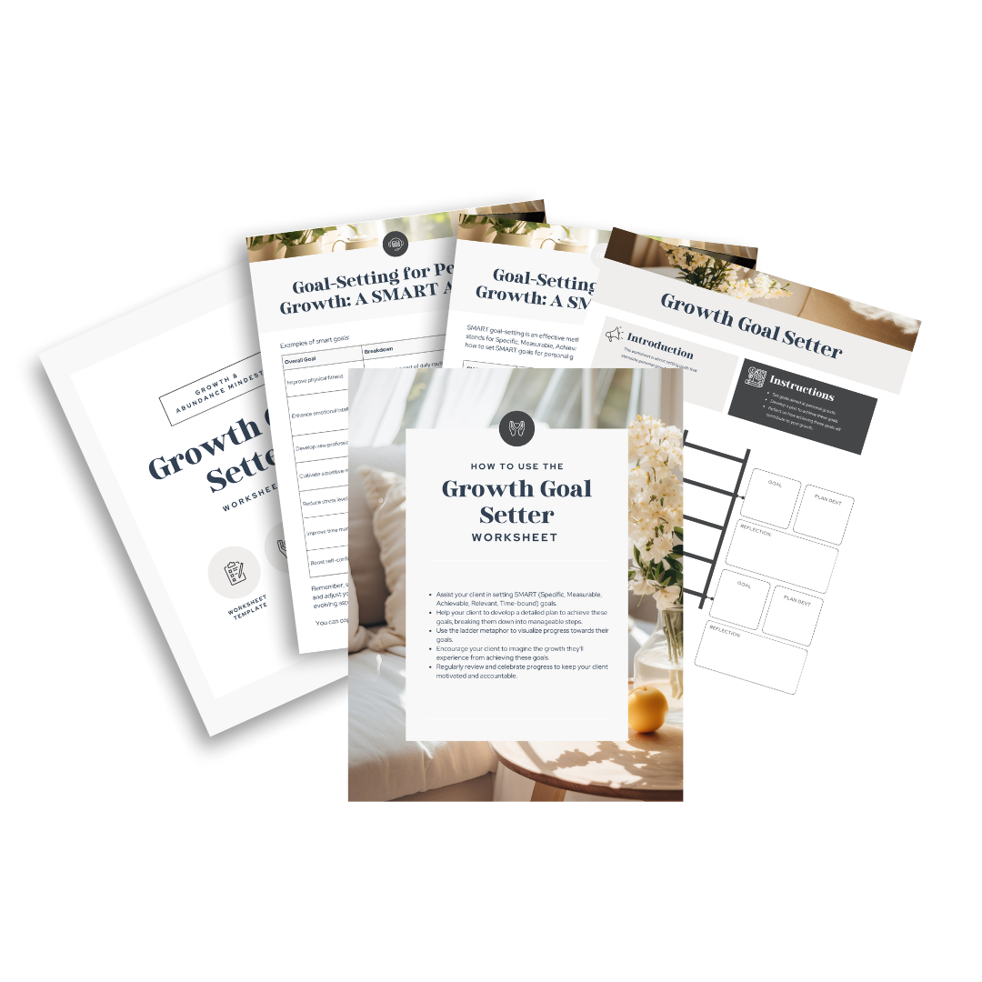 • Goal Setting Worksheet: Guide clients in defining clear, actionable goals and creating a roadmap for success.