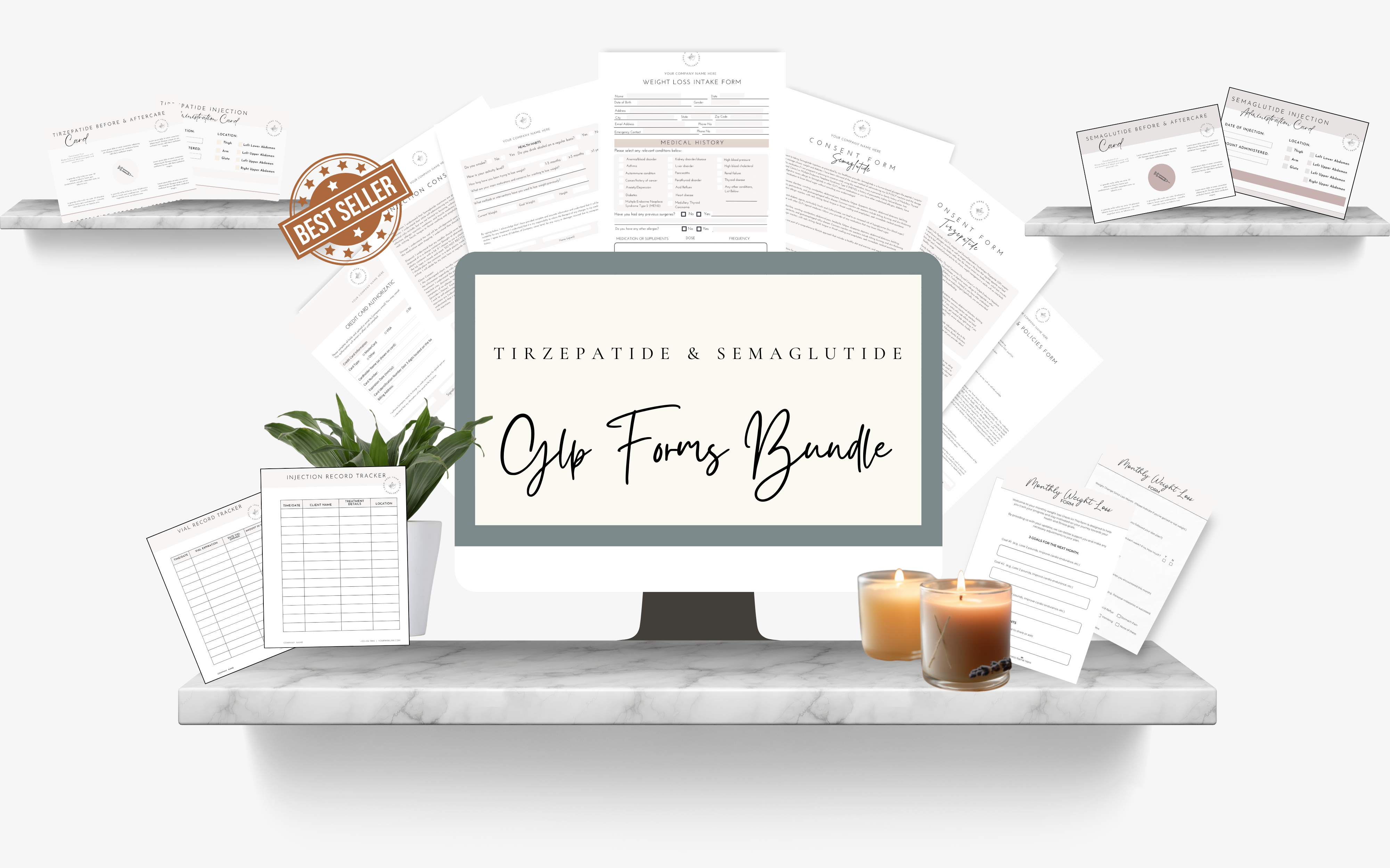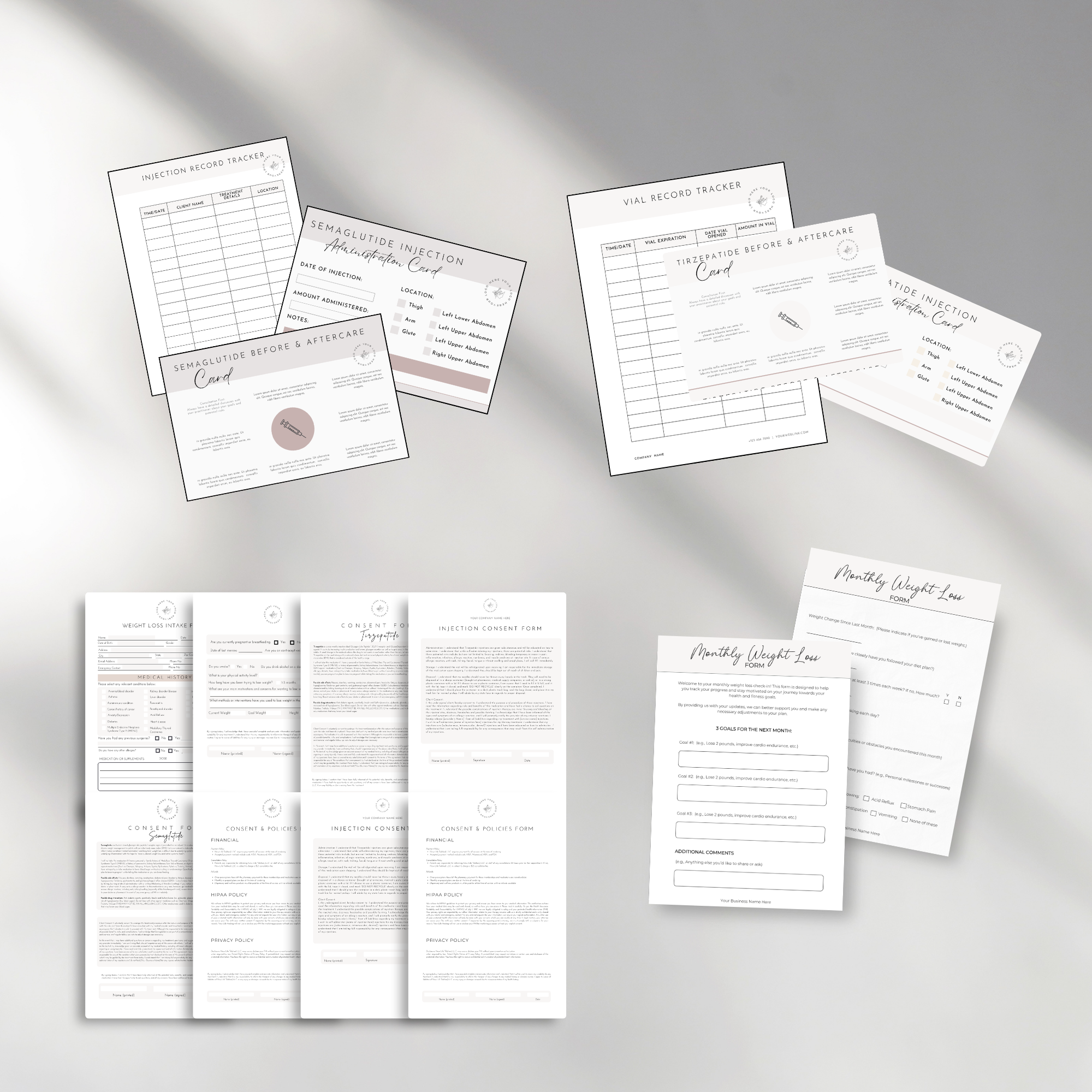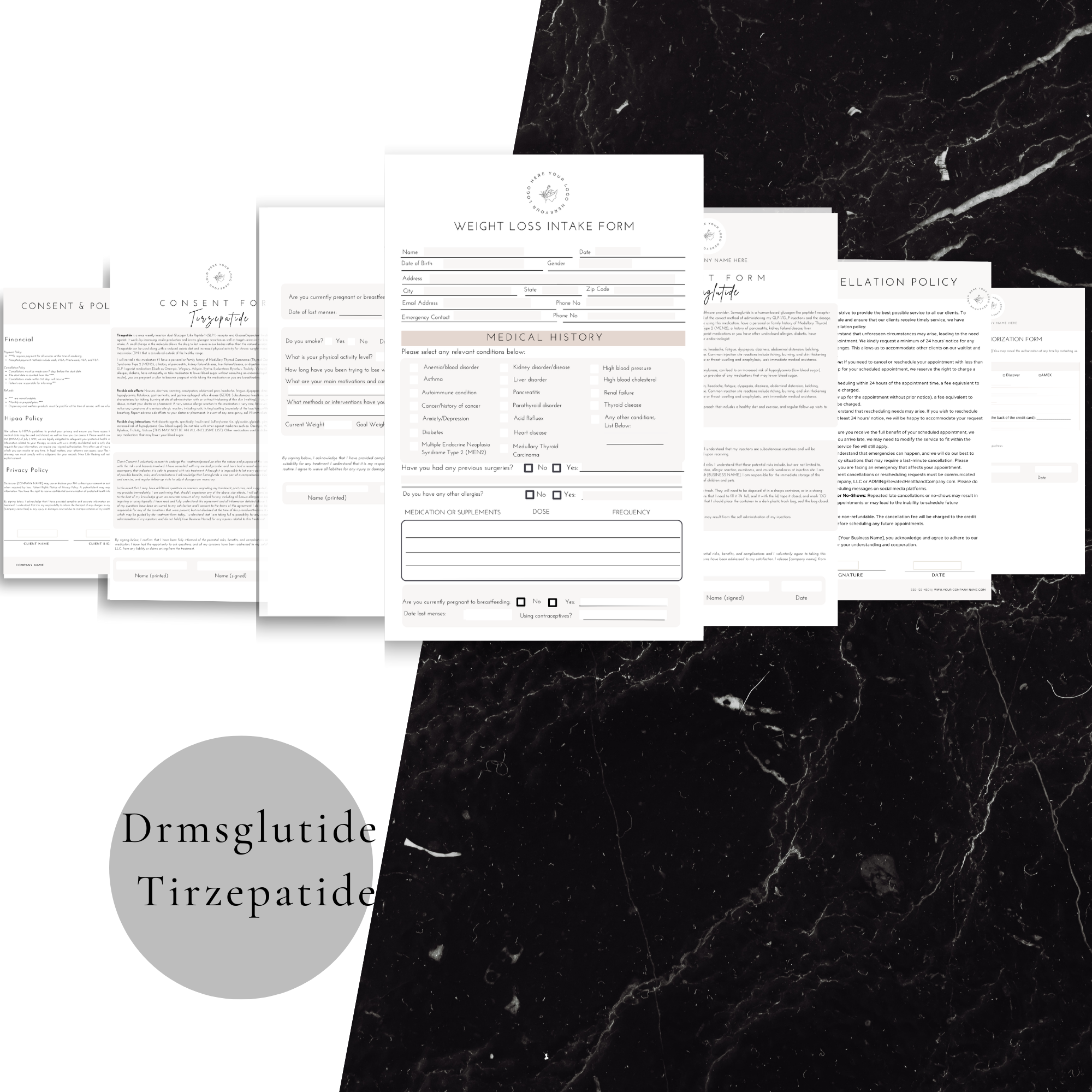 Enhance your practice with our professionally designed, customizable forms tailored for healthcare providers prescribing GLP-1 medications like Semaglutide or Tirzepatide, for weight loss. These forms are perfect for gathering patient information, obtaining consent, and tracking progress, ensuring a seamless and efficient workflow.