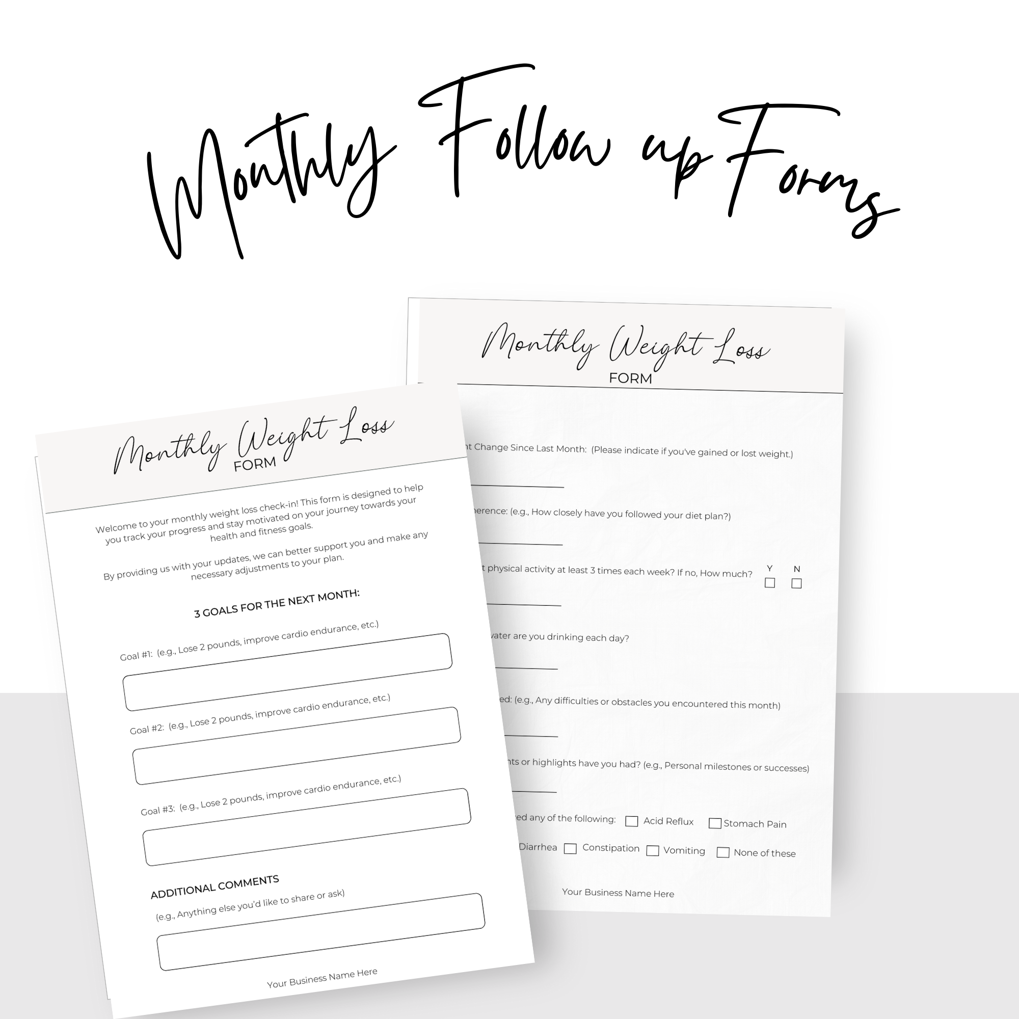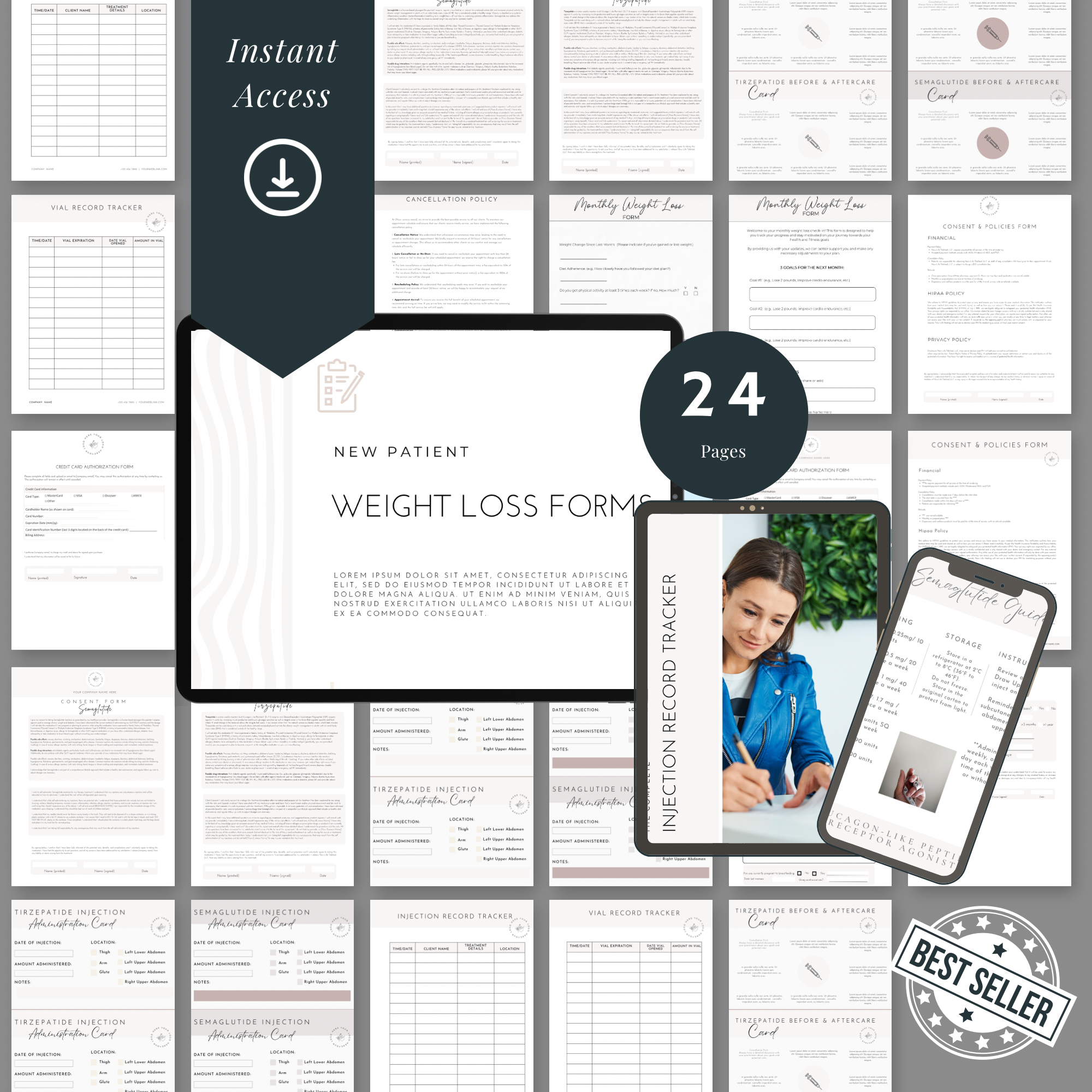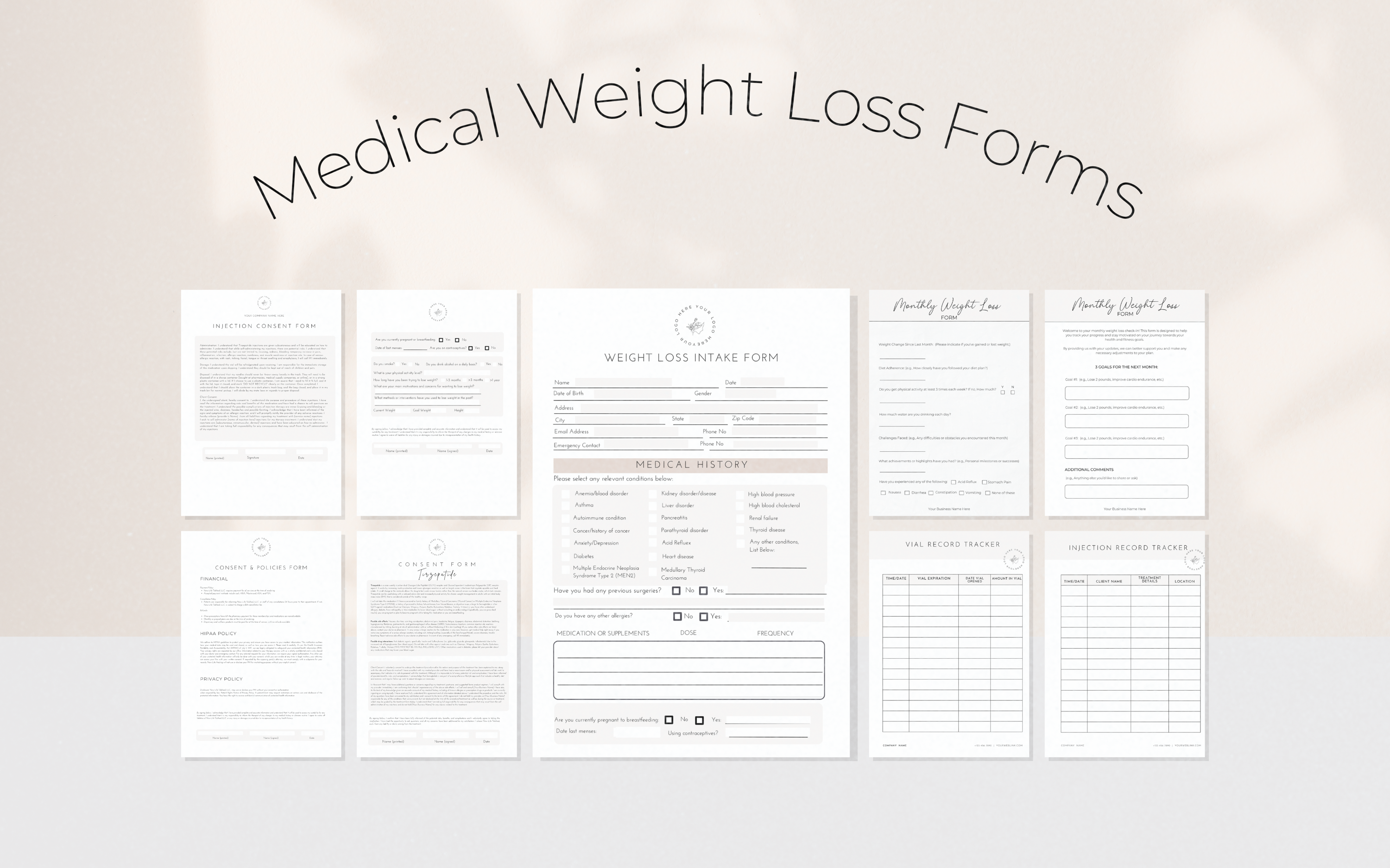 Enhance your practice with our professionally designed, customizable forms tailored for healthcare providers prescribing GLP-1 medications like Semaglutide or Tirzepatide, for weight loss. These forms are perfect for gathering patient information, obtaining consent, and tracking progress, ensuring a seamless and efficient workflow.