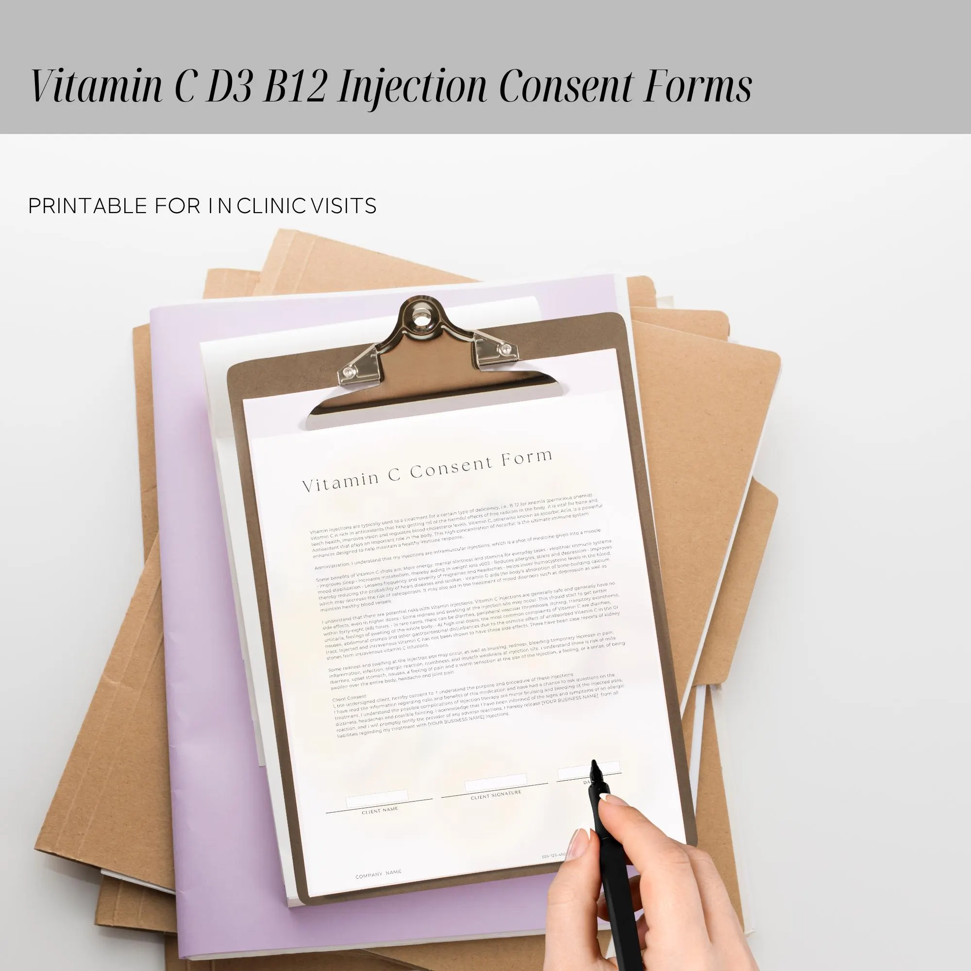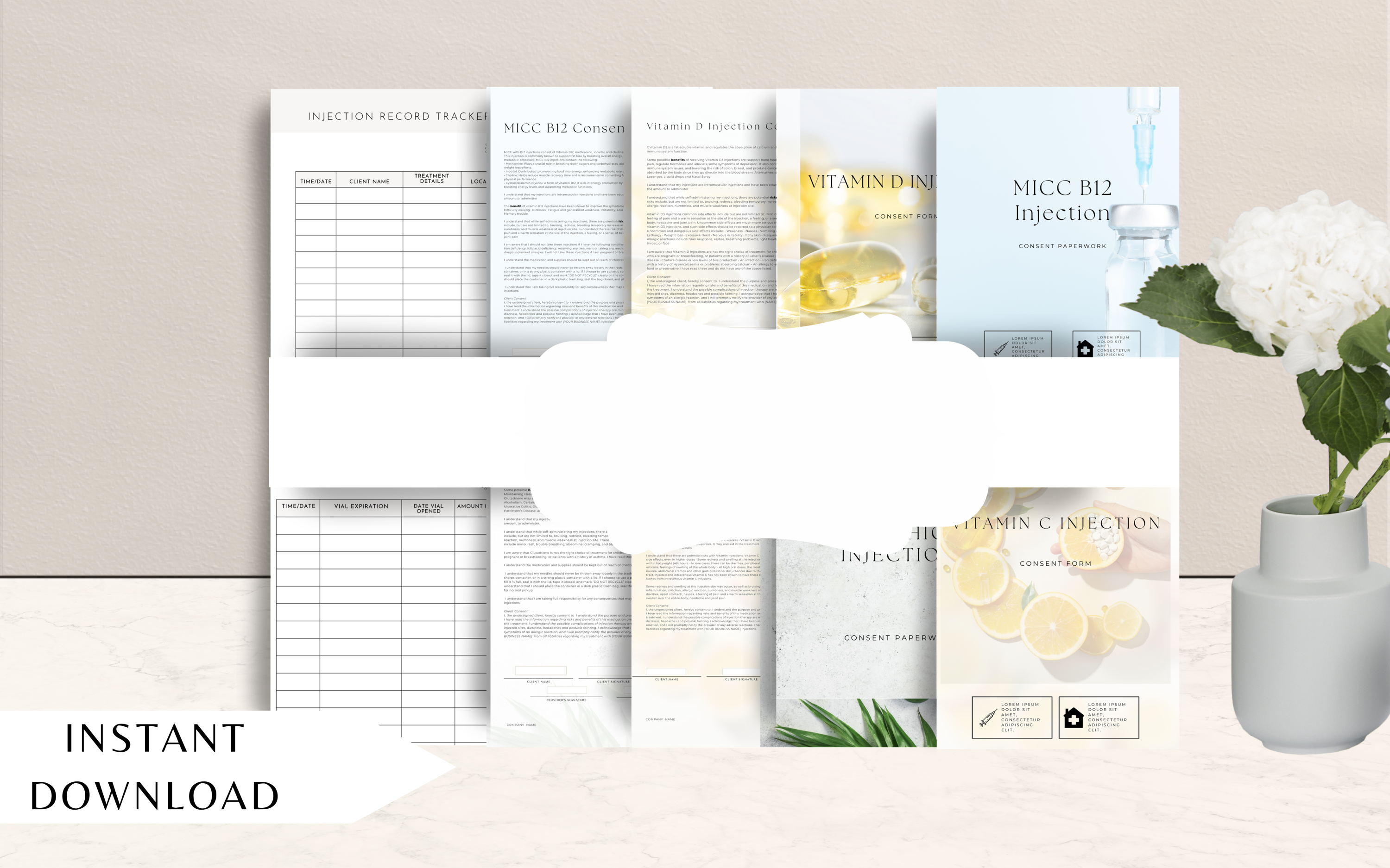 This Vitamin C, D3, and B12 Injection Client Consent Forms Kit is the perfect solution for clinics and medspas looking to elevate their client experience and streamline operations. Download today and transform your workflow with our editable, easy-to-use templates!